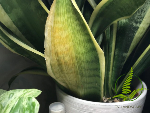 1. Cây Lưỡi hổ bị vàng lá; lá bị khô và cháy viền