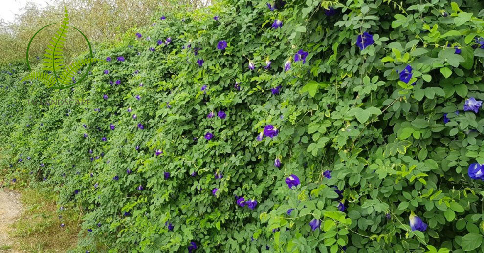 Đậu biếc được trồng ở bờ tường có hoa quanh năm không rụng lá vào mùa đông nên làm bức tường của bạn luôn xinh đẹp.