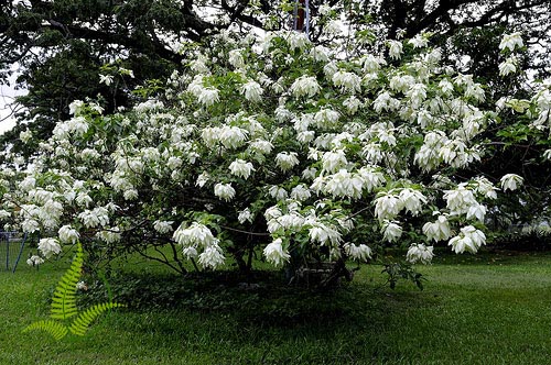 Hoa: Hoa thường mọc thành chùm, mọc ở đầu cành. Hoa nở có năm cánh màu trắng, có nhị vàng. Một hoa phát triển thành một cánh hoa lớn, với cuống dài và trắng. Nó được mệnh danh là hoa én bạc. Khi nhìn từ xa trông chúng giống như những chú bướm đang bay lượn trên những chiếc lá xanh tuyệt đẹp.