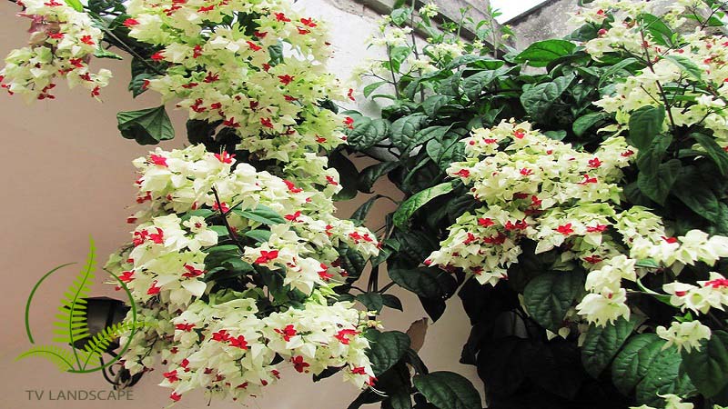 Cây Hoa Ngọc Nữ có chiều cao từ 50 - 80 cm, lá của cây có hình trái tim, màu xanh nhạt và trên mặt lá có phủ lớp lông mềm. Cây thuộc loại dây leo, chiều dài có thể lên đến 4 - 6m, hoa có màu trắng và đầu hoa có màu đỏ tươi. Hoa thường mọc thành chùm, chụm lại như chiếc ô nhỏ, có 4 chiếc nhị đưa ra ngoài và thường nở quanh năm.