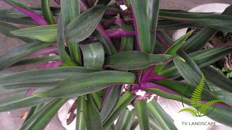 Lá ngọc trai có độ dài khoảng từ 18 - 25 cm, rộng khoảng 3 - 5cm, chỉ có bẹ không có cuống, bề mặt phía trên lá có màu xanh lục, màu xanh đậm dần về phía đầu và nhạt dần về phía bẹ lá, bề mặt bên dưới lá có màu tía.