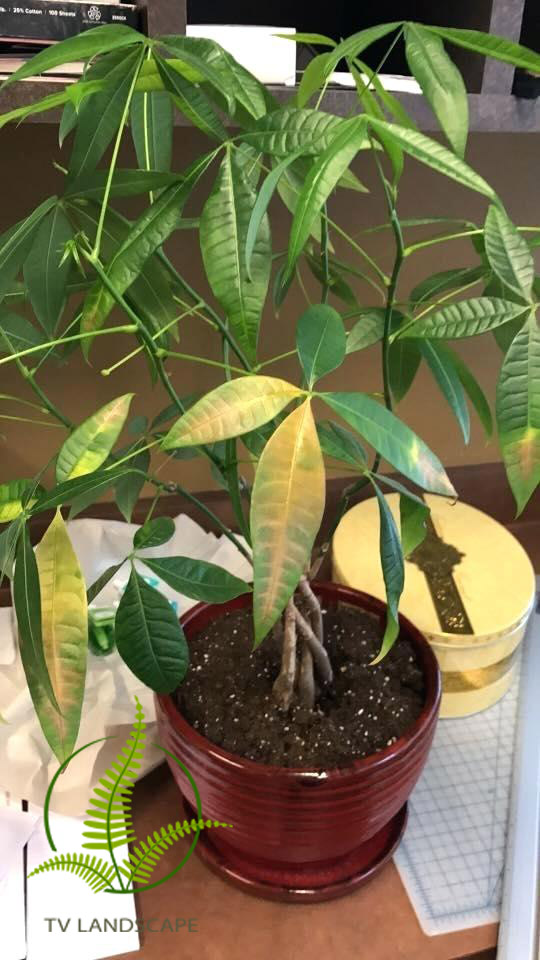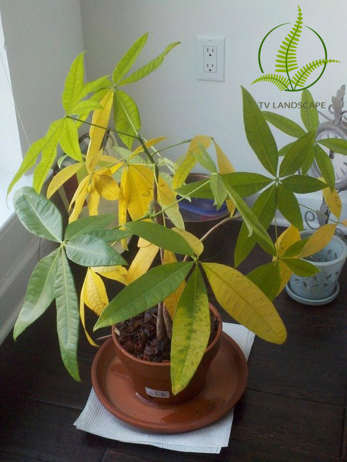 Thông thường, cây bị vàng lá do hai nguyên nhân chính: Do môi trường yếm khí, không gian xung quanh kín khiến không khí lưu thông kém. Nguyên nhân thứ 2 có thể do cây được tưới quá nhiều nước khiến lá cây chuyển màu vàng và bị rụng.