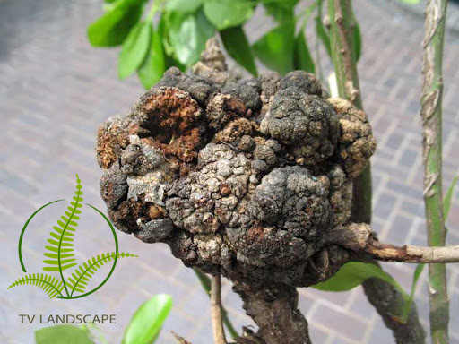Các đốt thân ngắn lại tạo thành những u sưng sần sùi, vỏ, thân, cành nứt rạn nhiều khía chằng chịt, bên trong gỗ nổi u, vết bệnh có màu nâu, nhiều vết sần sùi có thể chập lại liền nhau thành một đoạn dài, có khi vết bệnh bao phủ quanh cả cành, có khi chỉ một phía làm dễ gãy, khô chết.