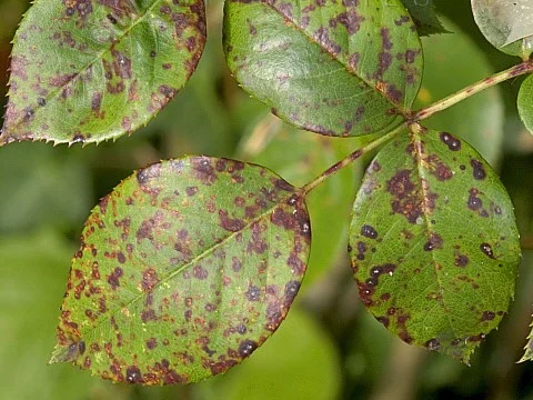 Bệnh đốm đen trên hoa hồng do một loại nấm có tên là Diplocarpon rosae gây ra, giống như cái tên của nó hình thành những vết tròn màu đen có hình dạng bất định, từ từ hình thành dần trên toàn bộ bề mặt của lá.