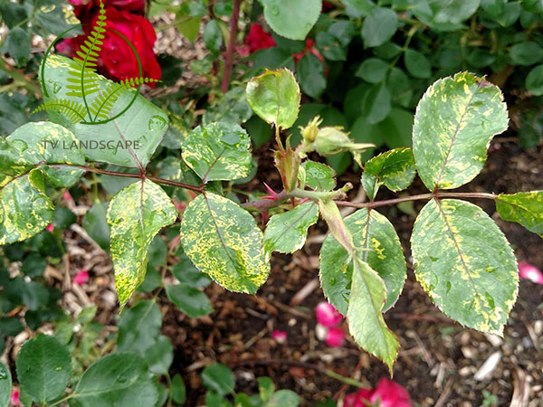 Khi thấy lá cây hoa hồng xuất hiện những vệt màu sáng loang lổ khác thường, nhìn thấy rõ gân lá, tức là cây đã bị nhiễm virus CMV. Thời gian đầu lá chỉ thấy lá có các vệt màu trắng hay xanh nhạt, có thể phân bố đều hoặc không đều. Bệnh chuyển biến nặng hơn có thể khiến lá hoa hồng nhăn nheo, xoắn lại.